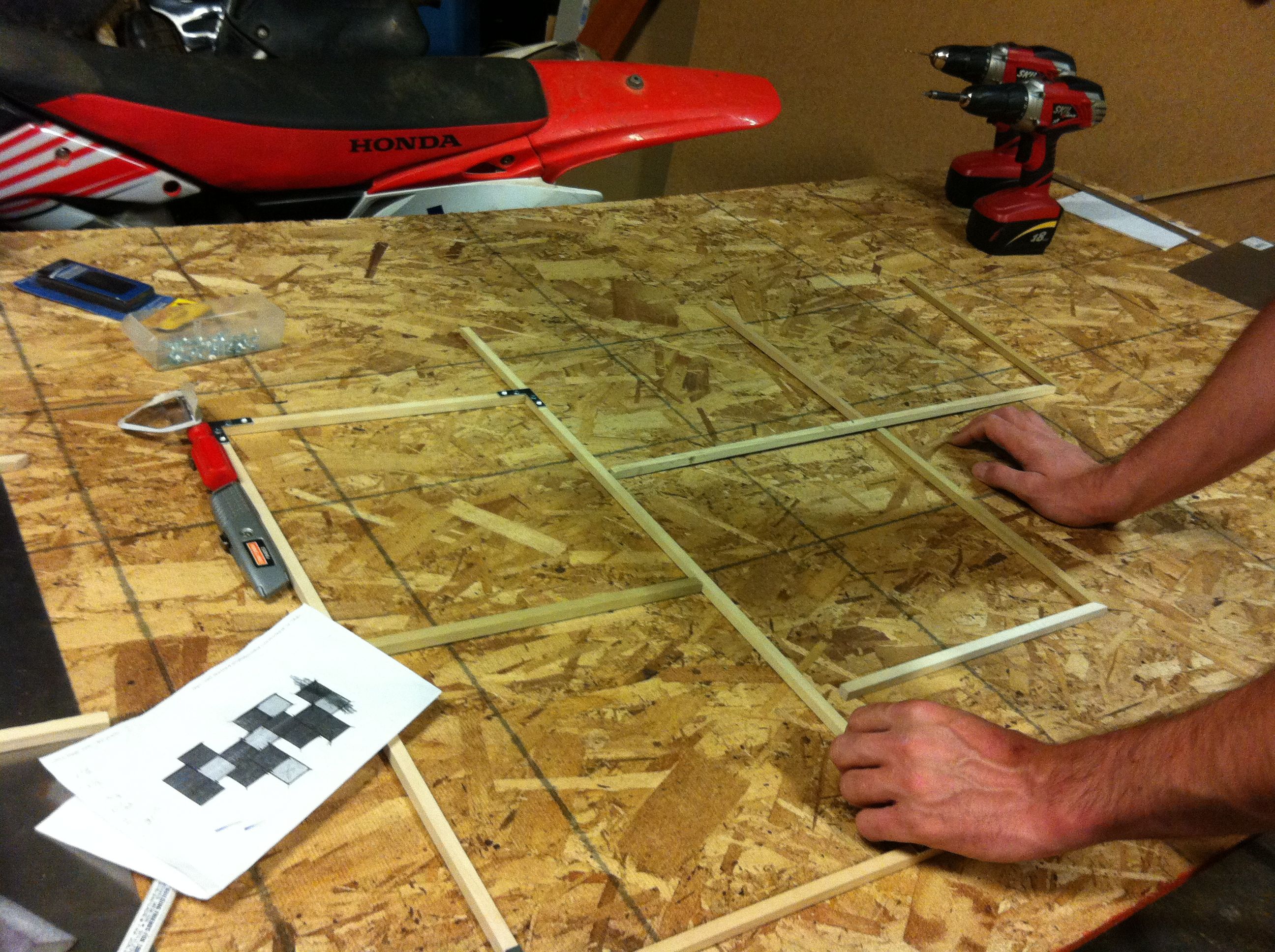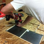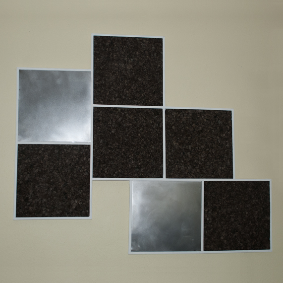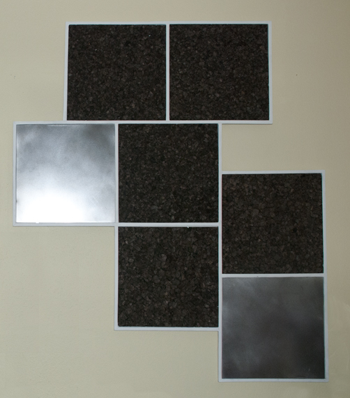 The design (by me) and construction (by Jake Soder) of this project was a bit of an evolution, but ultimately I wanted a large corkboard to cover the wall above my desk for posting notes, ideas and creative inspiration. I have an aversion to whiteboard covered walls and huge corkboards that feel empty, sparse or unfinished. Therefore with this project I aimed to make the board a piece of art in itself. I combined a dark brown organic looking cork with squares of brushed steel (for dry erase and magnets) and added a 1/2 inch white wooden frame…. creating an overall fusion of rustic and modern. I initially planned on one large composition, but then decided to divide it into two smaller ones for flexibility… allowing me to move them to two different walls if desired and to change the composition up regularly by rotating one or both of the boards.