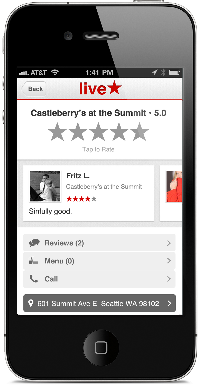 Livestar is an app I worked on that helps you get recommendations from the people you trust, as well as notable tastemakers and professional critics. The app supports ratings for restaurants, movies, music and more. Visit Livestar.com to get the app. Here are a few of my designs…