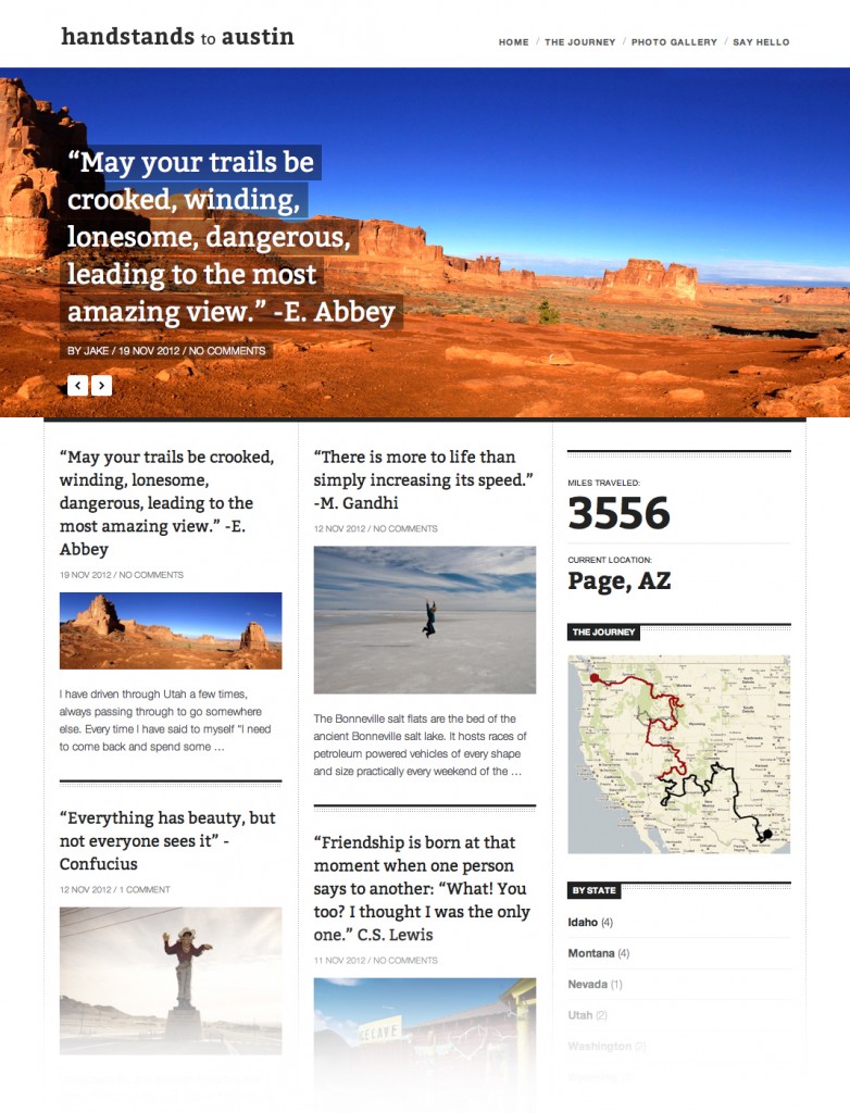 Jake and I are moving to Austin! It’s a temporary plan for the time being and we are estimating tentatively a year before returning to the Pacific Northwest. Despite all my international travels, I have seen very little of the Western USA. That said, we decided to take a 2 month roadtrip to get to Austin exploring several states, national parks, small towns, antique shops and so much more along the way. I’ve remapped a roughly 2500 mile trip into an over 6000 mile trip! We are thinking of this trip as somewhat of a creative sabbatical of sorts… and we have a few creative projects we will be doing en route. We will also be documenting random aspects of the trip on our blog: www.handstandstoaustin.com.