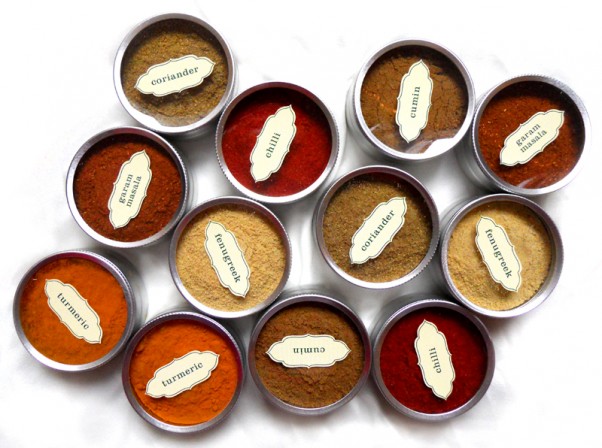 • 6 Tins: Garam Masala, Turmeric, Fenugreek, Chilli, Coriander and Cumin.