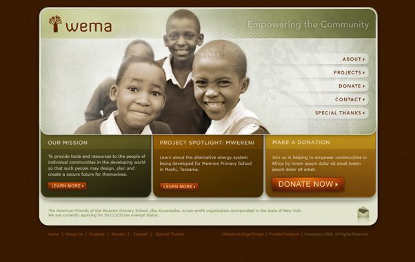 Wema (meaning to empower a community) is a small non-profit focused in Moshi, Tanzania working primarily with Mwereni primary school, which has a significant focus on educating children who are blind. This website design was a pro-bono project.